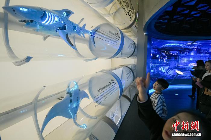 1月30日,搭客在位于天津滨海新区的国度海洋博物馆“翌日海洋”展厅参不雅多样海洋仿盼望器东谈主。