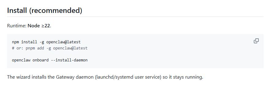 OpenClaw技俩官方装置指南自满。图片起头:OpenClaw的Github