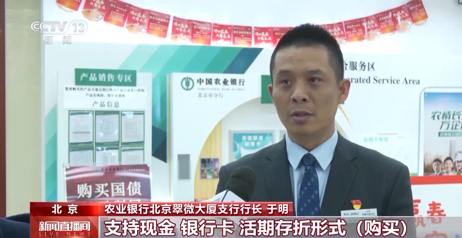农业银行北京翠微大厦支行行长 于明:这次国债只可线下柜面购买,撑执现款、银行卡、活期存折体式购买。