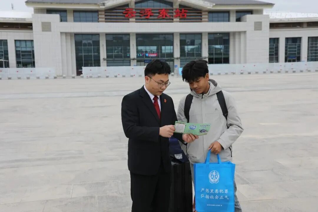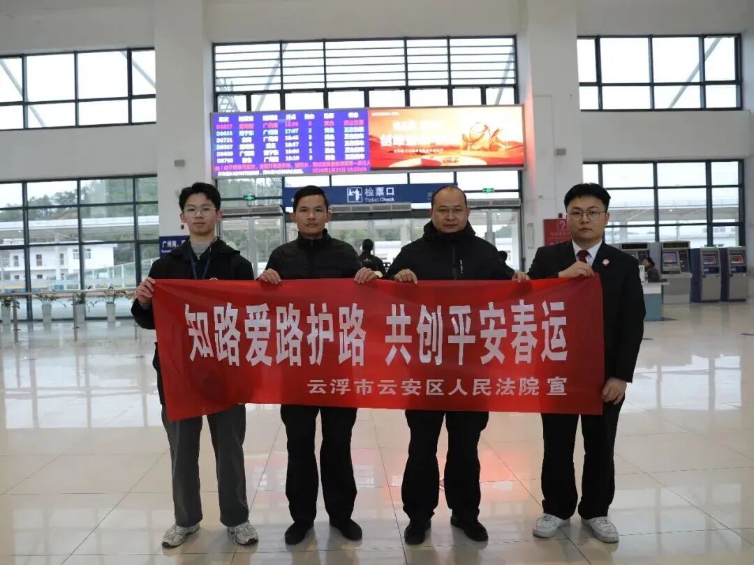 为加强春运时候法治宣宣道育,进一步提高全球知路爱路护路闭塞,确保铁路安全,营造祥瑞、有序、温馨的出行环境,近日,云安法院组织干警赶赴王人杨镇云浮东站开展“知路爱路护路 共创祥瑞春运”主题普法宣传举止。