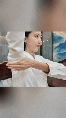 双手掌心分袂拍打对侧肘窝(尺泽穴、曲泉穴、少海穴)、腋窝(极泉穴、液渊穴、辄筋穴),足下反复,每组8拍,重叠2次。