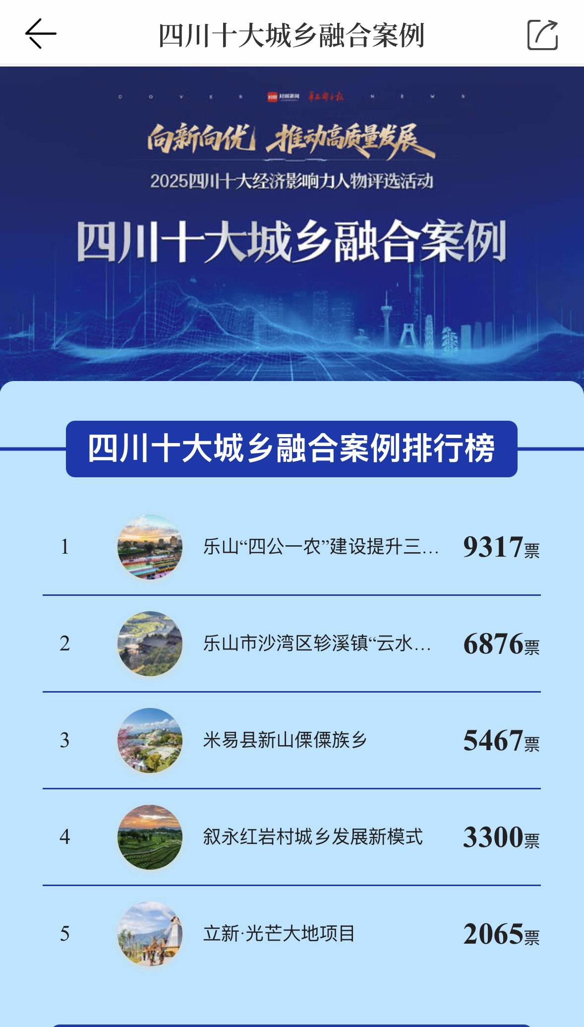 四川乐山“四公一农”神情以9000多票的收成,名列排名榜第一。
